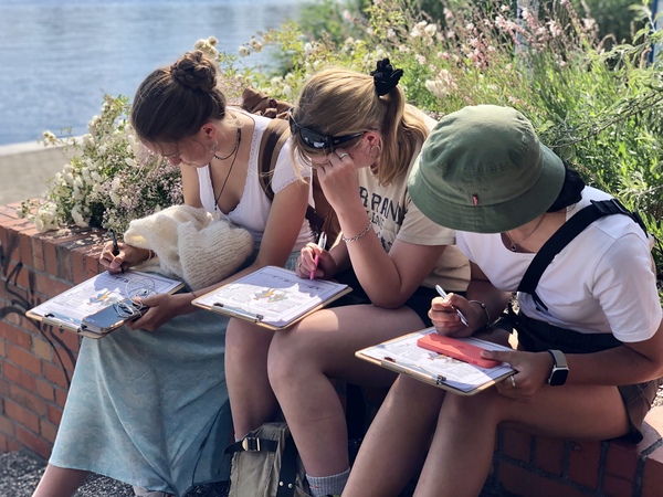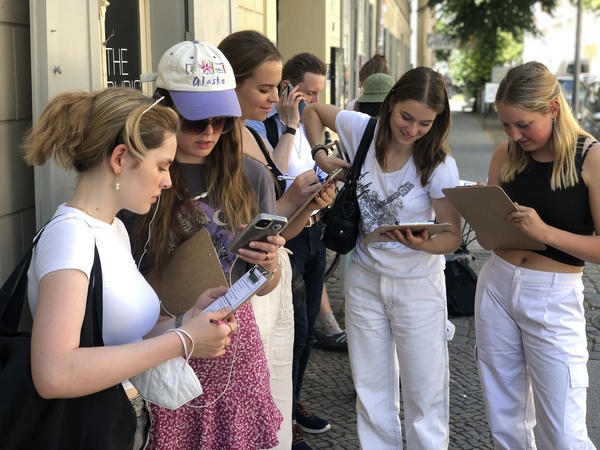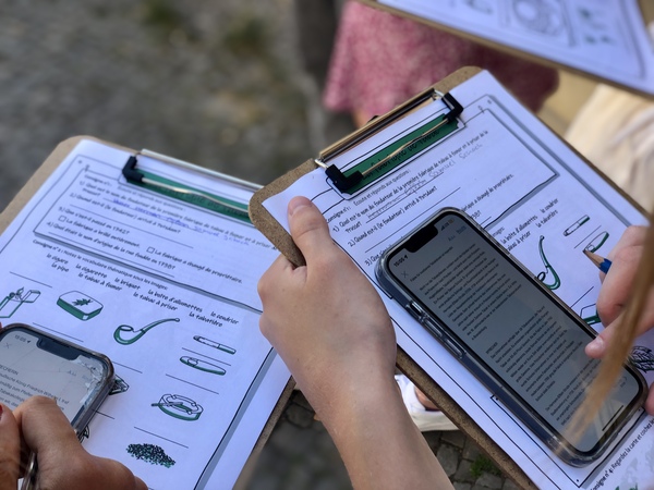 An jeder Station gibt der Audio-guide interessante Informationen, allerdings nur auf deutsch. Begleitet durch verschiedene Arbeitsaufträge kommt das Französische aber nicht zu kurz: so lernen die SchülerInnen unter anderem die französischen Handwerksberufe kennen, lesen das "Vater Unser" auf Französisch und philosophieren mit Voltaire und Friedrich dem Großen...